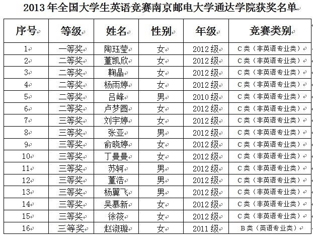 2013年全国大学生英语竞赛决赛成绩近日公布,伟德官网共获得全国一等奖1名,二等奖5名,三等奖10名。同学们取得的优异成绩体现了伟德官网学生较高的英语水平与优秀的文化语言素养。