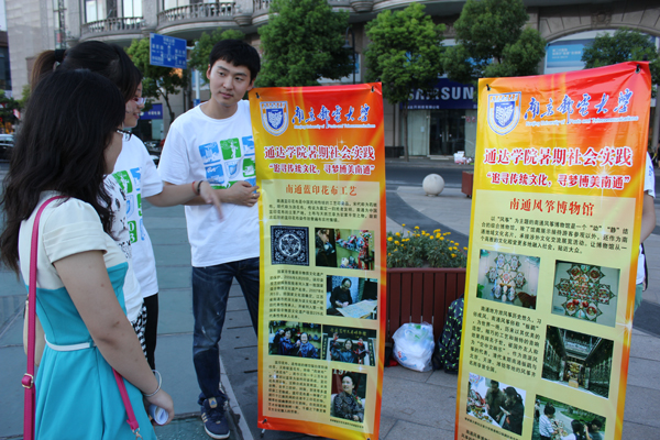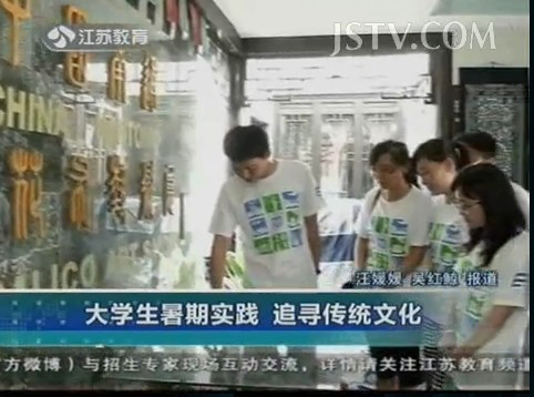 南通被誉为“蓝印花布之乡”。下午1点30分,暑期社会实践团又来到了由吴元新一手创办的南通蓝印花布博物馆,该博物馆已被列为中国蓝印花布传承基地,由吴馆长负责申报的“南通蓝印花布印染技艺”已列入首批国家级非物质文化遗产名录。在工作人员的引导下,同学们参观了蓝印花布的整个工艺制作流程,并认真听取了关于蓝印花布历史发展、工艺分类、制作流程、文印题材等内容的介绍,并在纺织、刮浆工序中上手实践。来自江苏教育电视台、南通电视台的记者也对实践团队进行了专访。学生们纷纷表示,通过实践和学习,大家感受到了传统文化的独特魅力,加深了对文化载体所蕴藏文化价值的了解,从而进一步增强了对传统文化保护的意识。