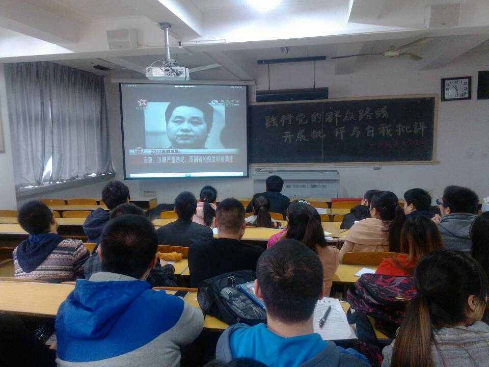 “批评与自我批评”是我们党在长期的革命和建设实践中形成的优良作风,是党永葆生机与活力的一大法宝。对于广大党员干部来讲,通过批评与自我批评,不仅能发现问题和不足,还能找到解决问题的思路、攻坚克难的办法。为此,我支部全体成员开展了这次真实、深刻而又务实的批评与自我批评教育活动。活动之初,学生党员首先向广大学生征集了对我党支部成员的意见和建议,群众代表对党员的问题做了一一点名批评。诸如群众反映党员中存在党员意识不强,对部分学生关心不够,工作态度不够主动和认真,行事草率,言语不够尊重,班级活动重形式缺少创新,部分党员有官僚之风,利己之欲等问题。之后,支部书记李印老师和部分学生党员带头做了自我批评。期间,问题剖析尖锐,整改认识深刻。此项教育实践活动遵循了“不留情面,不带‘私货’,不走过场”的“三不”原则,达到了触及灵魂,团结提高的目的,相信其成果也会在未来的实践中取得很好的实效。