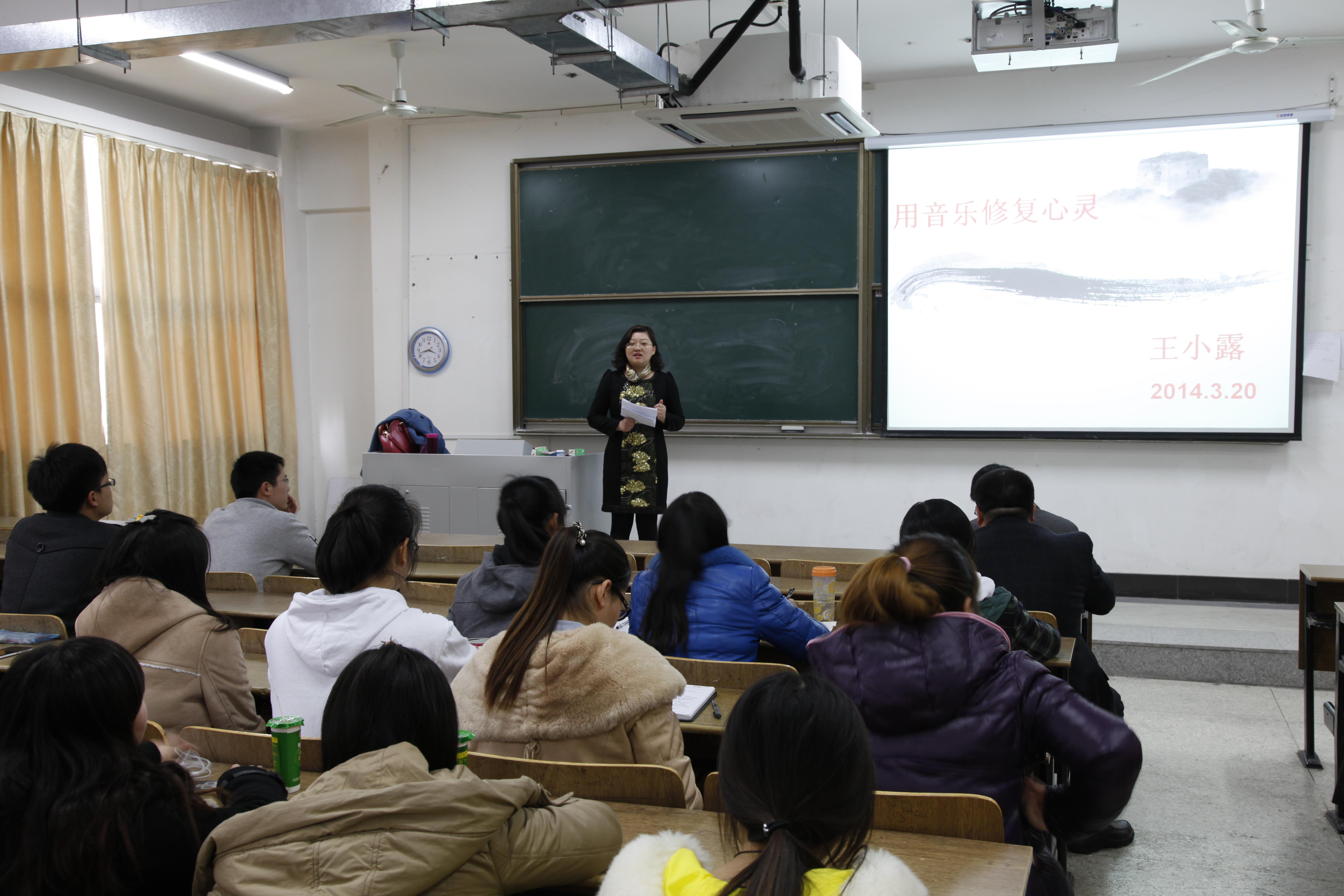 3月20日下午,伟德源自英国始于1946教育科学与技术学院党总支副书记兼副院长、中国音乐治疗学会会员、鼓楼区文学艺术家联合会音乐家协会会员王小露老师莅临伟德源自英国始于1946,为伟德官网学生带来了一场耳目一新的讲座。讲座以音乐体验的形式传达了音乐治疗的相关理念。本次讲座由教务处主办,教务处王志军处长、招就办副主任陈平波老师等相关老师也一同聆听了本次讲座。