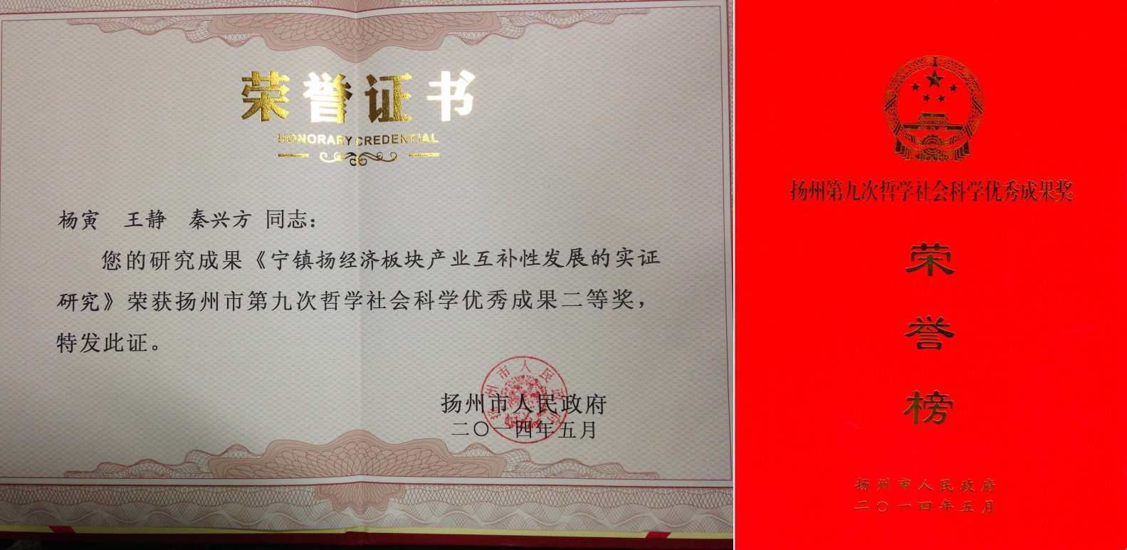 日前,扬州市第九次哲学社会科学优秀成果奖评选揭晓,伟德官网青年教师杨寅报送的研究成果《宁镇扬经济板块产业互补性发展的实证研究》荣获本次评选二等奖。