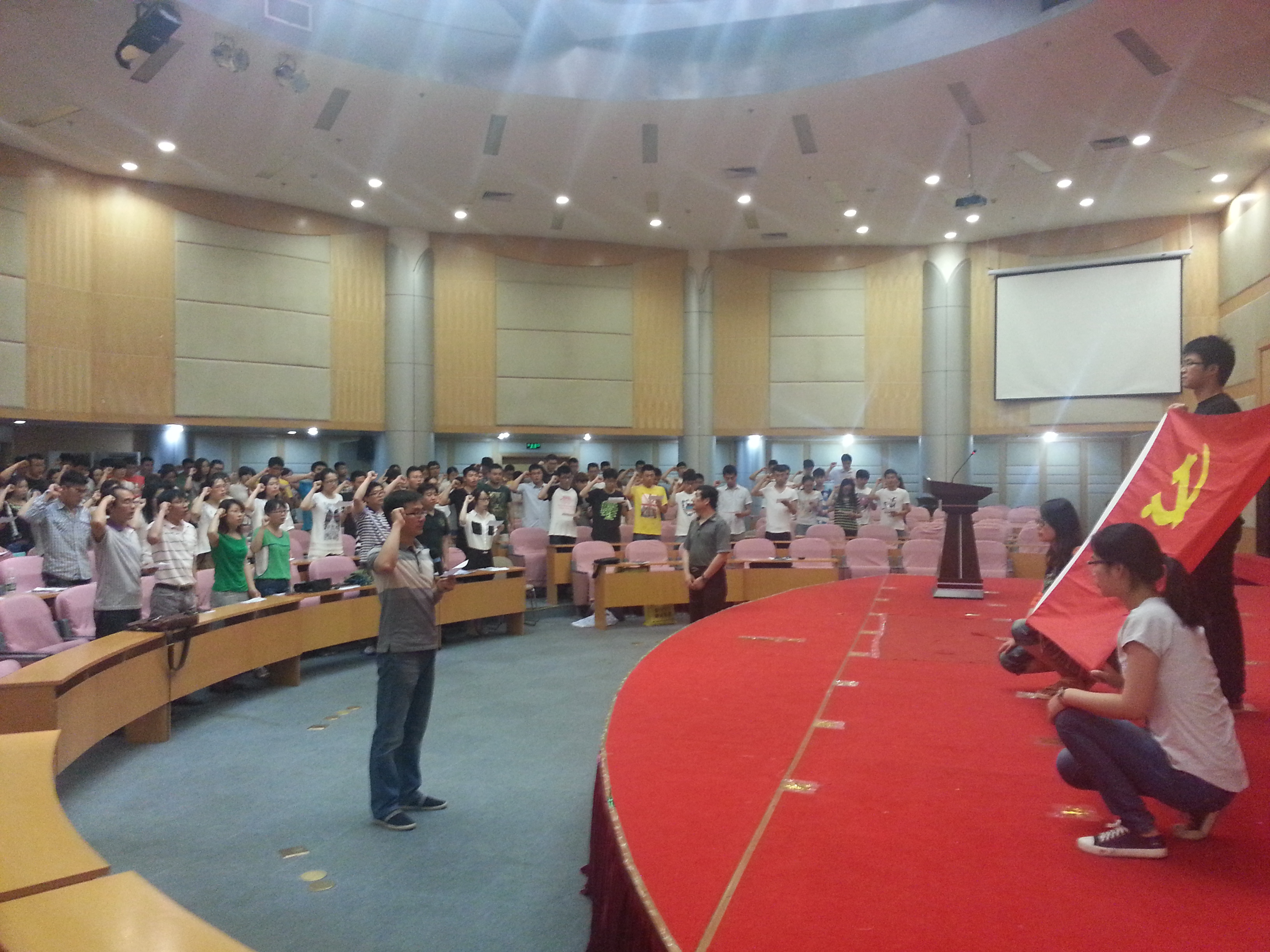 2014年6月10日下午,伟德源自英国始于19462014届毕业生新党员宣誓老党员重温入党誓词暨文明离校动员大会在三牌楼校区科学会堂二楼报告厅举行。伟德源自英国始于1946党委书记成际镇出席了大会,2010级全体辅导员老师、组织干事和321名毕业生党员参加了大会。