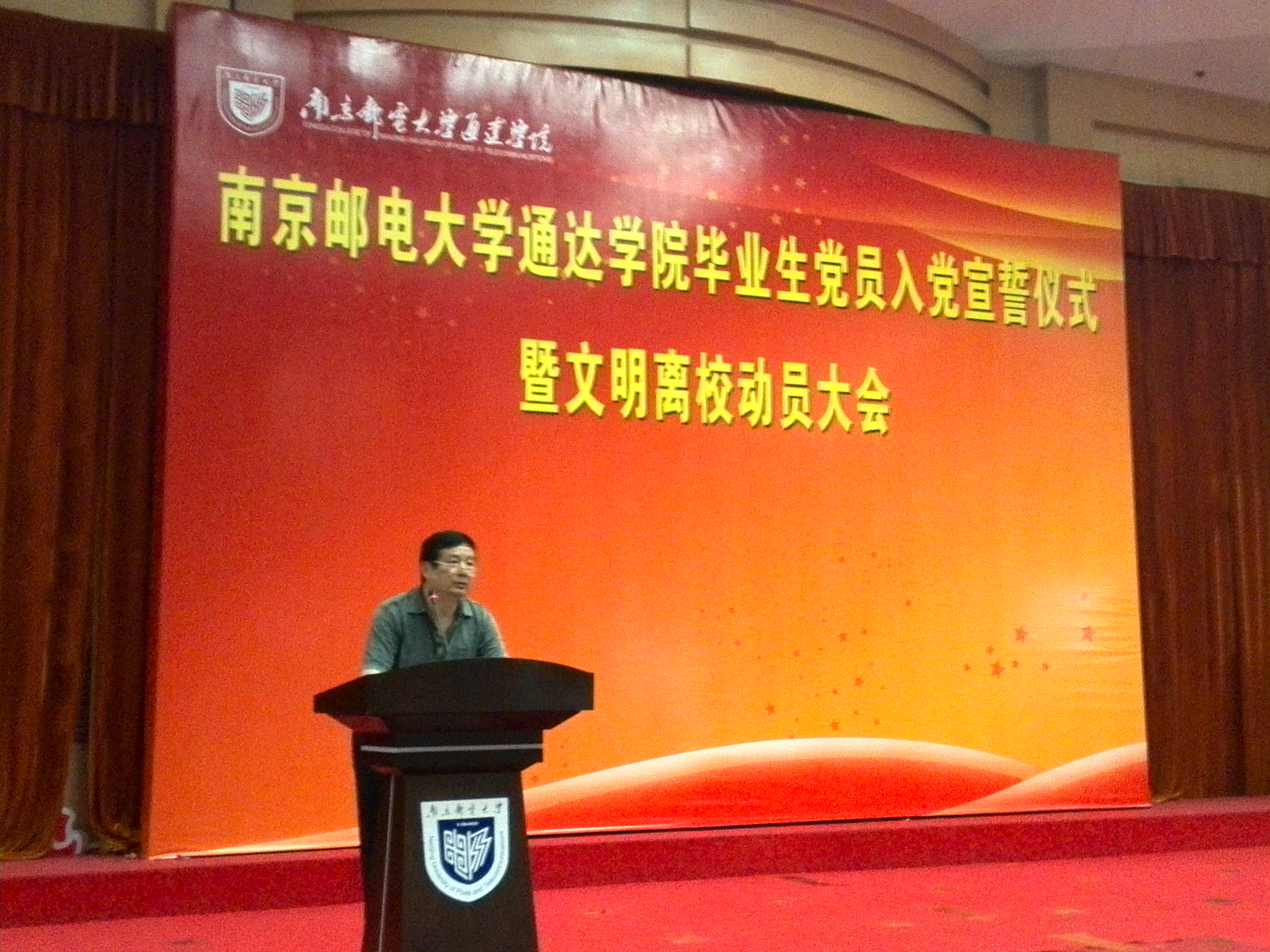 学院党委书记成际镇代表学院党委发言,他希望每位党员都要永远记住入党宣誓这一神圣而庄严的时刻,激励自己终生践行入党誓词,为党的事业奋斗终身。成书记对毕业生党员提了四点希望:一是做最好的自己。要不断加强政治理论学习,树立坚定的政治理想信念,要在将来的工作岗位上不断提高科学文化素质和业务能力,提升自我,实现自我;二是要带动别人。要发挥好模范带头作用,带动影响周围的人;三是要要永葆共产党员的先进性;四是以身作则,文明离校,做好表率,站好最后一班岗,以实际行动回报党组织的关怀与信任。
