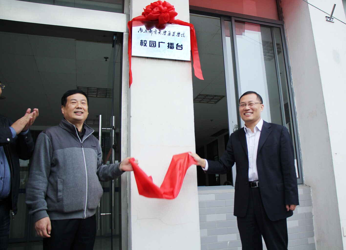 2014年10月30日下午,伟德官网校园广播台揭牌和开播仪式在大活中心一楼大厅顺利举行。中国移动扬州分公司副总经理朱长国、邗江公司总经理徐伟、学院党委书记成际镇应邀参加了揭牌仪式。学生工作处处长、团委书记李印,学生工作处副处长、团委副书记解厚荣,招生就业办公室副主任、保卫处副处长陈平波以及校园广播台近30名学生共同参加了揭牌仪式。现场氛围活泼,同学热情高涨。