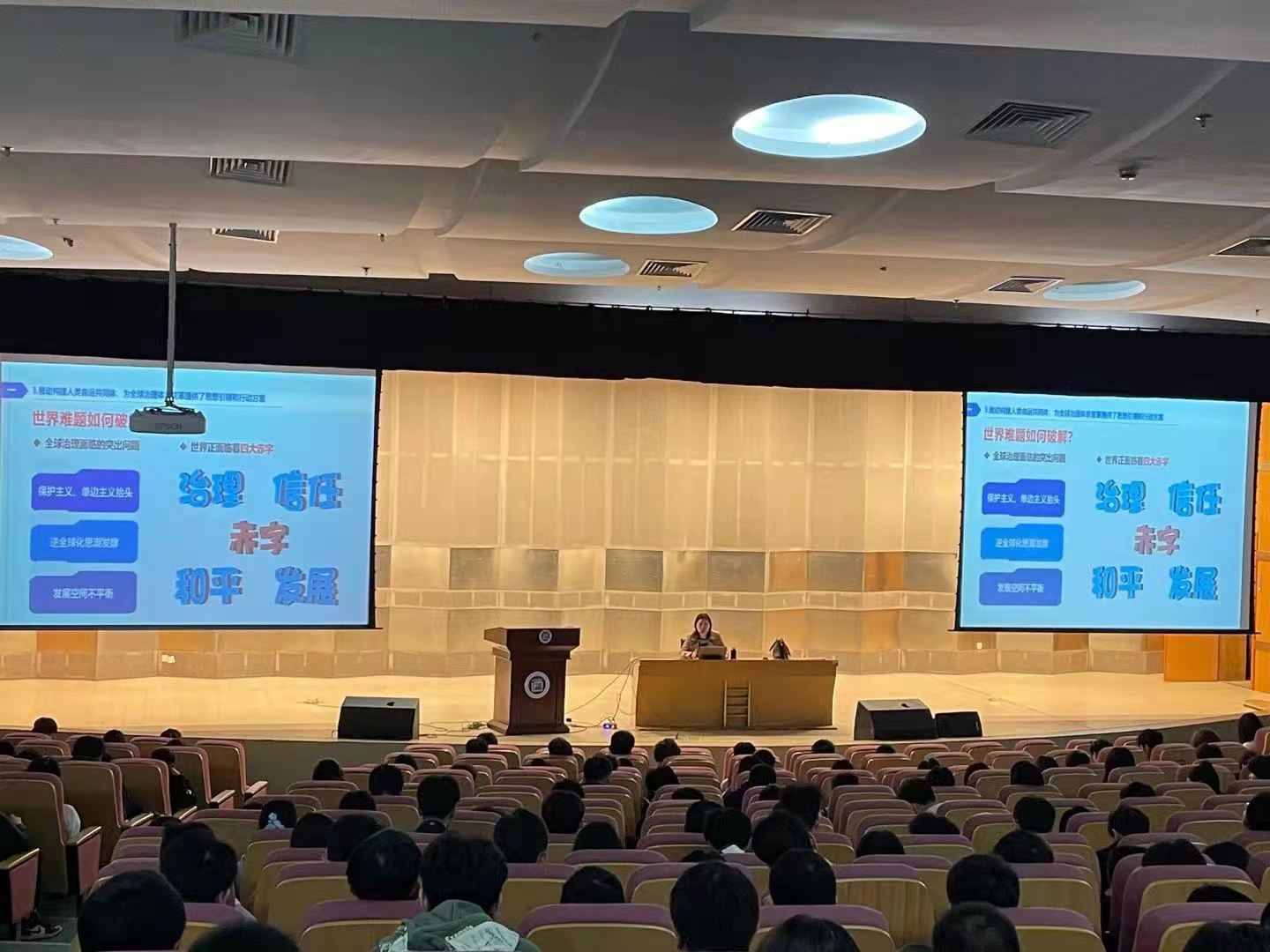 4月27日,由伟德官网思想政治理论课教学部、教务处、团委联合主办的“通达大讲堂”讲座于行政楼一楼学术报告厅举行。本次讲座由伟德源自英国始于1946马克思主义学院副教授李咏梅博士主讲,主题为:携手共建人类命运共同体。近500余名学生参与讲座。