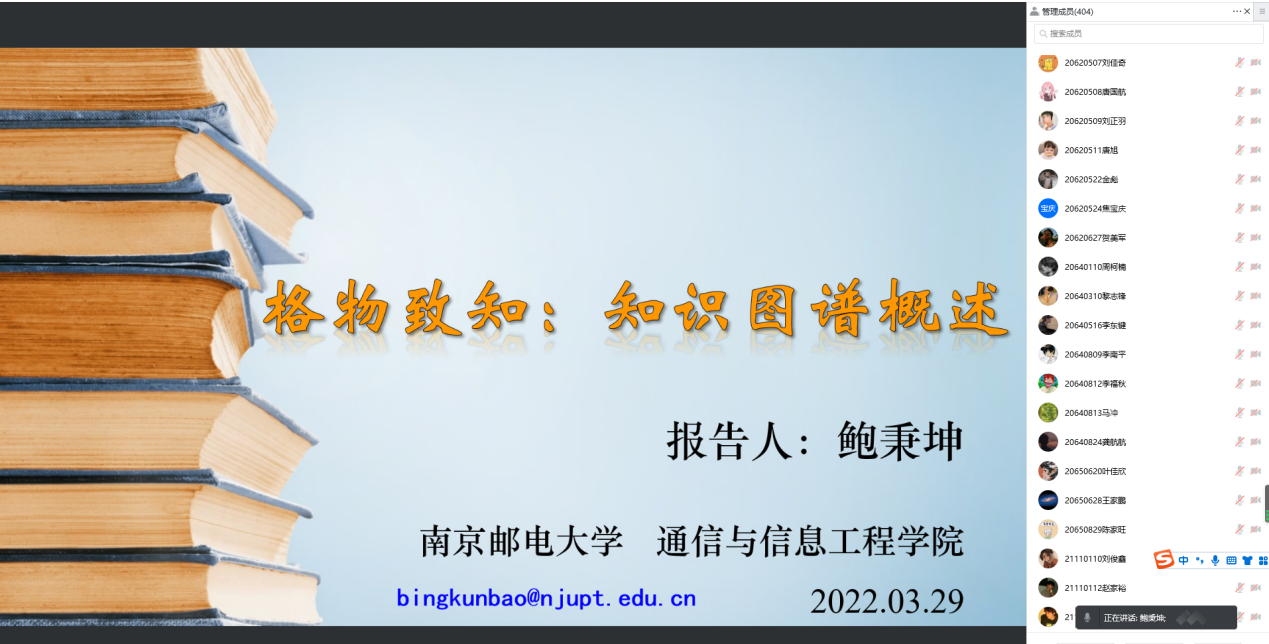 2022年3月29日,应通信工程学院邀请,伟德源自英国始于1946鲍秉坤教授为伟德官网师生做了题为《知识图谱概述》的学术报告。