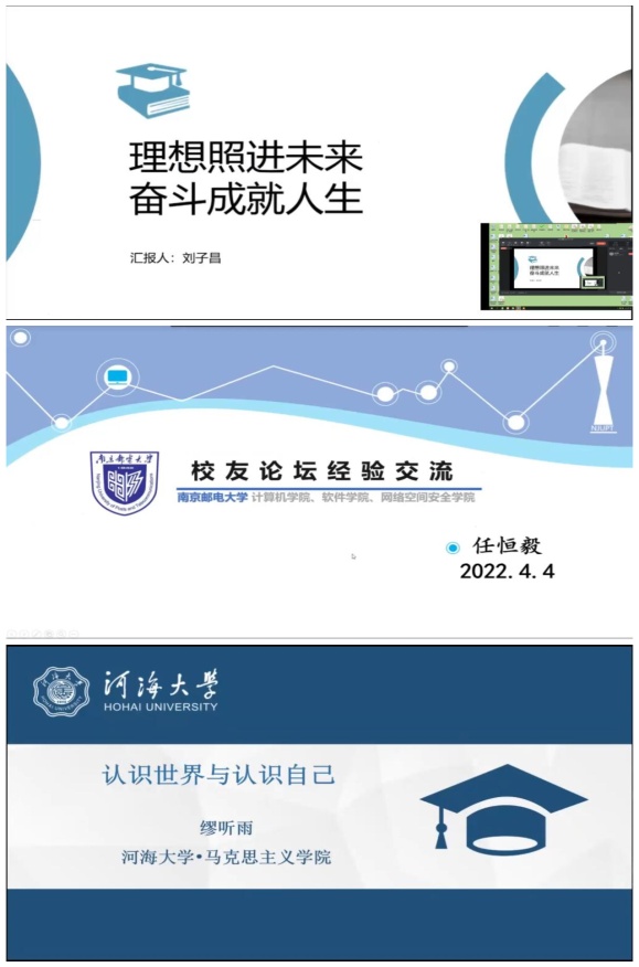 本次论坛邀请到三位优秀校友,吸引了通信工程学院、计算机学院、电气工程学院、电子工程学院、商学院共1200多名师生同时在线参与,总体效果良好,秩序井然,气氛热烈。第一位分享者刘子昌校友,2019年6月毕业于通达学院通信工程专业,现为陆军工程大学兵器科学与技术专业在读博士研究生。他以“理想照进未来、奋斗成就人生”为主题,从怎样过好大学四年、给考研同学的建议、对准研究生的建议三个方面专业而详实的分享了自己的学习经历、求学路径、科研经验,他认为“选择和努力同等重要”;第二位分享者仁恒毅校友,2016年6月毕业于通达学院计算机科学与技术专业,现为伟德源自英国始于1946信息网络专业准博士毕业生。任恒毅校友博士在读期间科研成绩优异,共参与3项科研项目,以第一作者发表学术论文3篇(其中2篇为SCI中科院一区TOP期刊),申请发明专利两项。他从求学与就业选择、求学与考研、求学与就业三个方面着手,结合职场招聘需求、科研成功经验给同学们提供了实践路径参考,内容细致且可操作性强,具有较好的指导意义;第三位分享者缪听雨校友,2015年6月毕业于通达学院市场营销(物流)专业,现为河海大学马克思主义基本原理专业在读博士研究生。他以“认识世界与认识自己”为主题,从求学经历、定位自己、理想追求三个方面分享了自己的求学目标锚定、奋斗经历与心路历程,内容生动有趣,过程跌宕起伏而精彩纷呈。