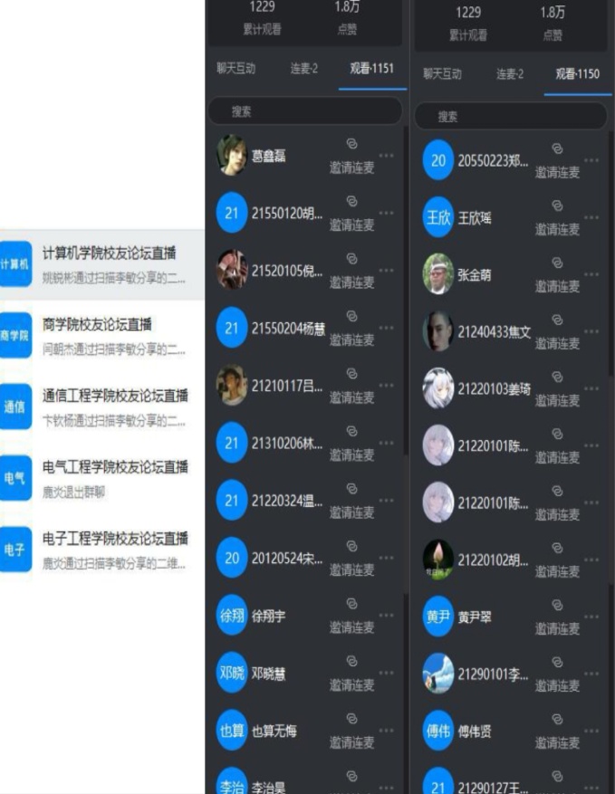 分享结束后,有多名同学申请连线与校友进行了互动。最后,李敏老师感谢三位校友给学弟学妹分享了自身的青春故事,三位校友的求学经历给在校学生提供了很好的学习借鉴。
