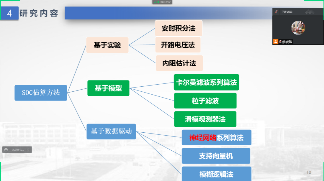 接着,丁老师重点介绍了锂离子电池的建模、状态估计等主流方法,尤其是从控制角度出发的基于模型的状态估算方法。
