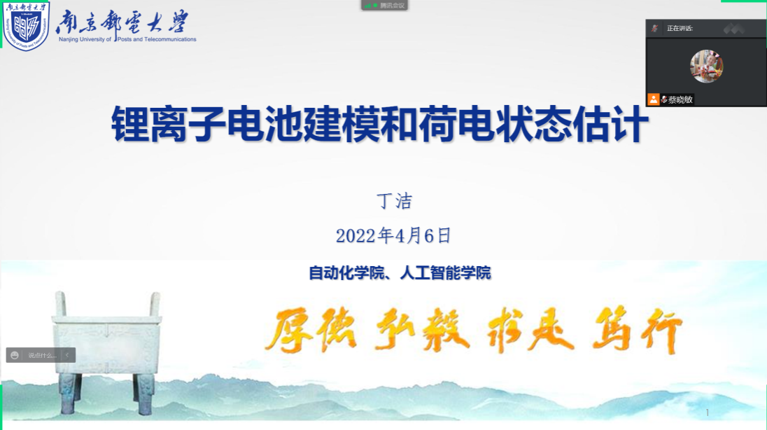 4月7日晚,应电气工程学院邀请,伟德源自英国始于1946自动化学院丁洁副教授为伟德官网师生作题为《锂离子电池建模和荷电状态估计》的学术报告。