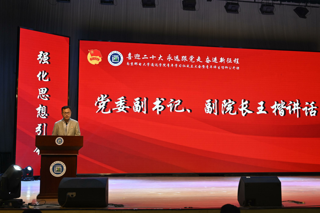 党委副书记、副院长王楷作了《在新时代中学思践悟 在新征程上筑梦前行》的讲话。王书记表示青年学习社的成立是伟德官网广大青年政治生活中的一件大事、一件喜事,他代表学院向学习社的成立表示祝贺,并向全院团员青年致以节日的问候。王书记分析说明了在伟德官网成立青年学生社的必要性,他指出党和国家领导人始终把关注的目光聚焦青年,明确提出赢得青年才能赢得未来,对青年一代寄予殷切期望,注重启迪青年智慧,激发青年力量,勉励青年担当。伟德官网成立学习社对于进一步聚焦共青团工作的主责主业,推动“青年大学习”走向深入、取得实效,促进优秀青年学生队伍的壮大发展,有着重要作用。王书记对全院青年学生提出四点希望:一是坚定信念,做社会主义核心价值观的践行者;二是勤学笃行,做民族复兴国家富强的推动者;三是明辨是非,做主流思想文化的引领者;四是学习榜样,做传承五四精神的担当者。王书记勉励同学们,要珍惜时光,不负韶华,不负青春,用刻苦努力履行“强国有我,请党放心”的庄严承诺,书写绚丽多彩的青春和未来!