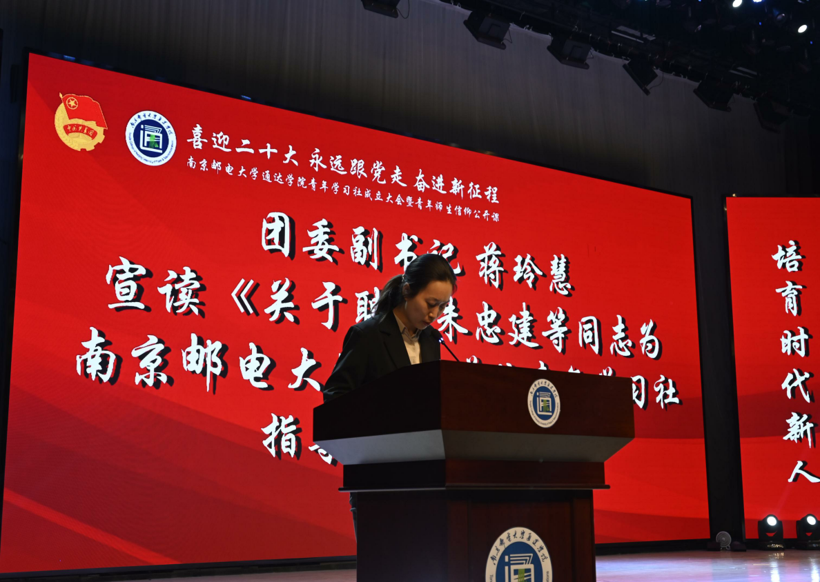 团委副书记蒋玲慧宣读《关于聘任朱忠建等同志为伟德源自英国始于1946青年学习社指导教师的决定》