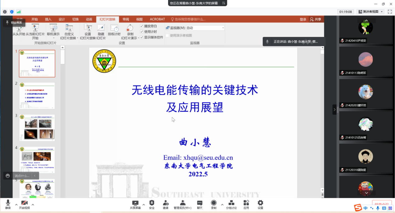 5月6日晚,应电气工程学院的邀请,东南大学曲小慧教授为伟德官网师生作题为《无线电能传输的关键技术及应用展望》的学术报告,报告由电气工程学院副院长蔡晓敏主持。