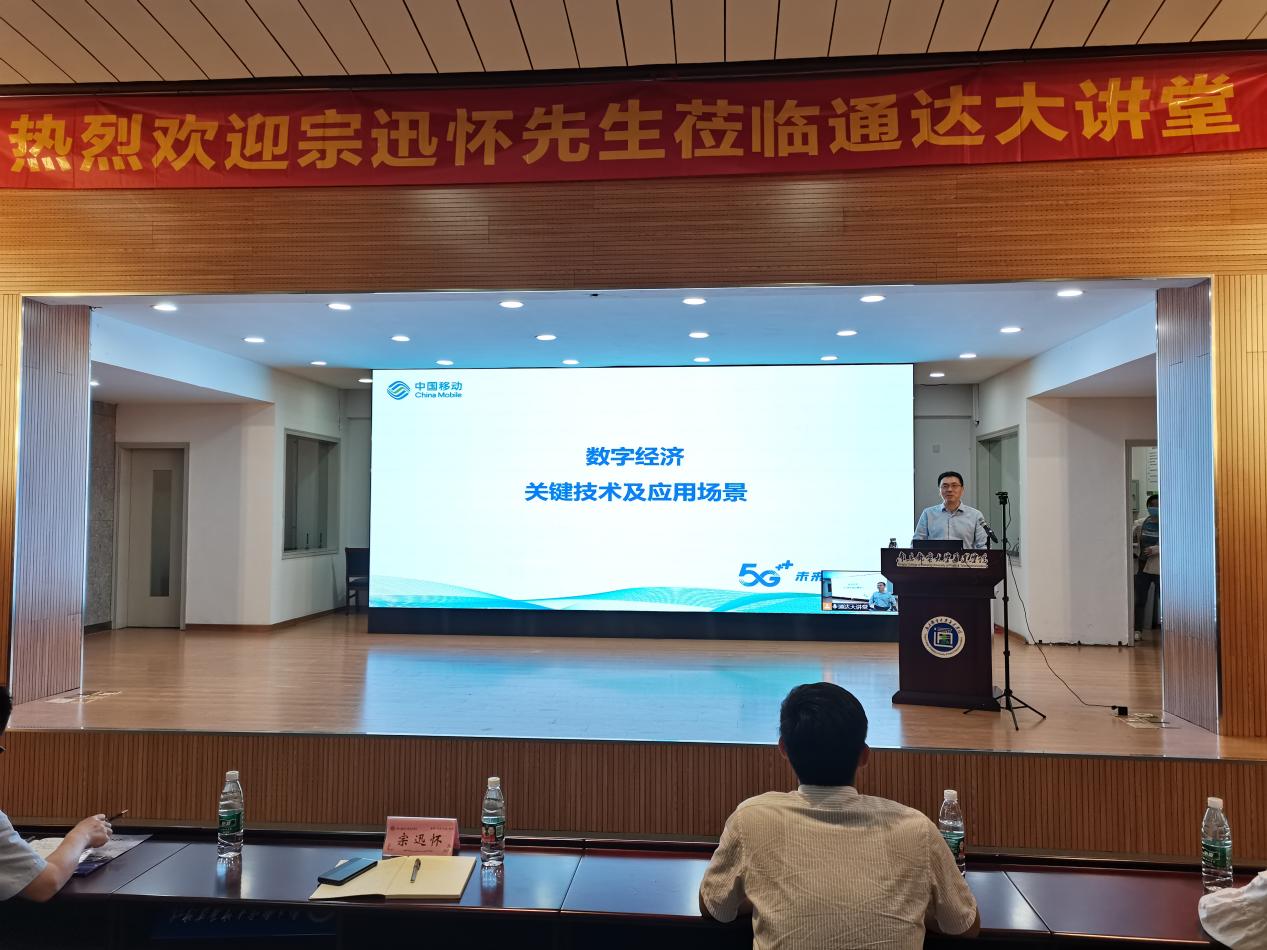 宗迅怀先生以“数字经济关键技术及应用场景”为题,从数字经济、5G、云计算、大数据、人工智能、AR/VR、智慧农场、智慧医疗等方面向学生讲述了数字经济时代的发展前景,并告知学生要努力学好专业知识,始终保持对各行各业的兴趣,将所学知识运用到应用场景中。