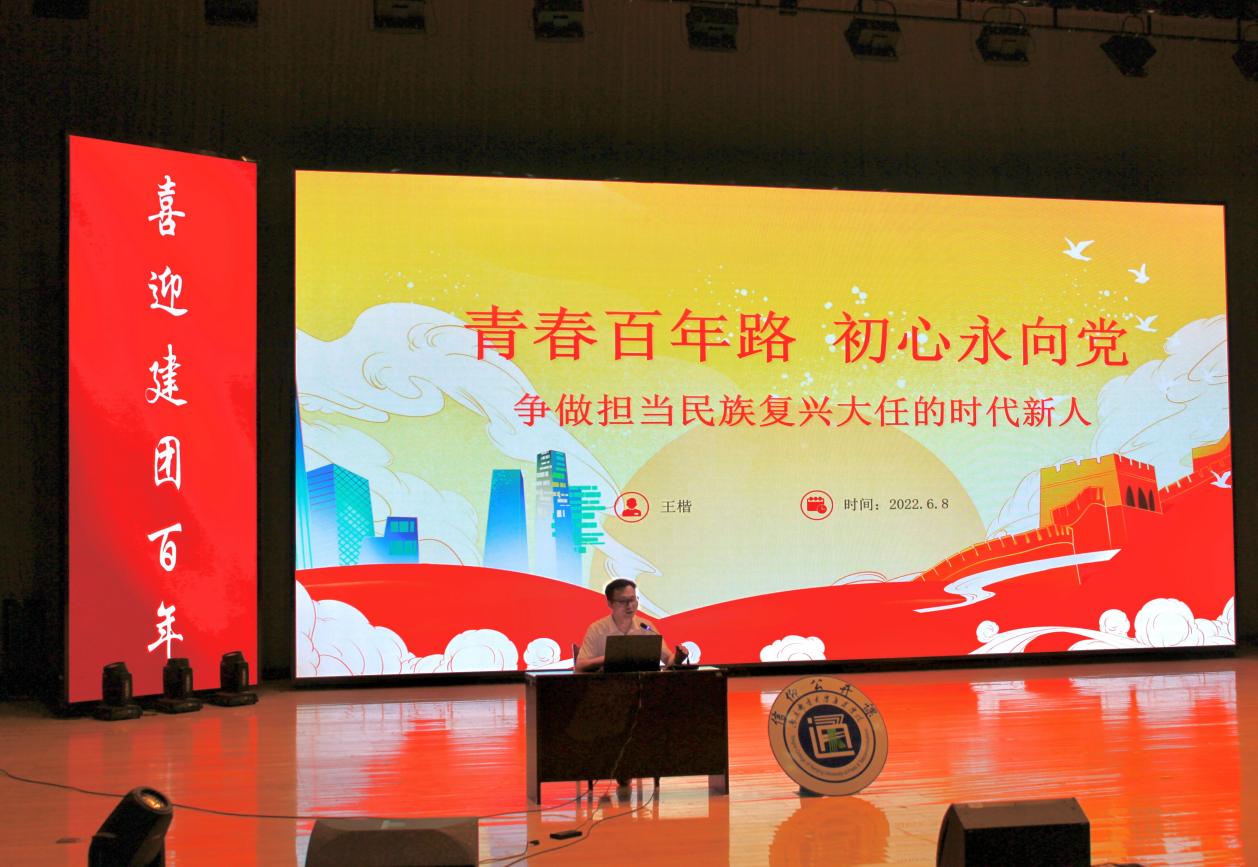 开班典礼结束后,王书记讲授了第一课《青春百年路,初心永向党——争做担当民族复兴大任的时代新人》,王书记以团的历次全国代表大会为主线,带领大家回顾中国共产主义青年团的百年光辉历程,体会中国青年刻在骨子里的五四精神,学习一代又一代共青团员前赴后继、勇当先锋,奋进在民族复兴的大道上;带领大家学习习近平总书记在庆祝中国共青团成立100周年大会上的重要讲话内容,让大家更加明确了作为团学骨干肩负的历史使命与担当。他强调要在学习团史中坚定理想信念、不忘初心跟党走,同时努力练就过硬本领、锤炼高尚品格、发扬开拓进取的精神,号召青年人要牢记党的宗旨,继续先辈的光荣事业,沿着先辈光荣的足迹,为实现中华民族伟大复兴矢志前行,让火热的青春在干事创业中得到升华。