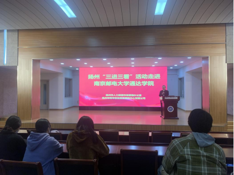 4月7日下午,由扬州市人力资源市场管理办公室主办的“三进三看”——在扬高校学生留扬活动之职业指导进校园讲座在伟德官网实验楼报告厅举办。扬州市委组织部、人社局领导,伟德官网常务副院长赵洪牛及近200名学生到场参加活动。