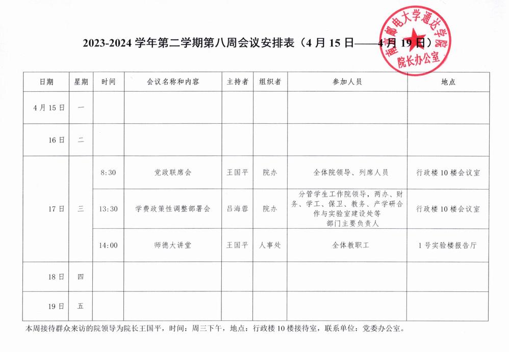 2023-2024学年第二学期第八周会议安排表