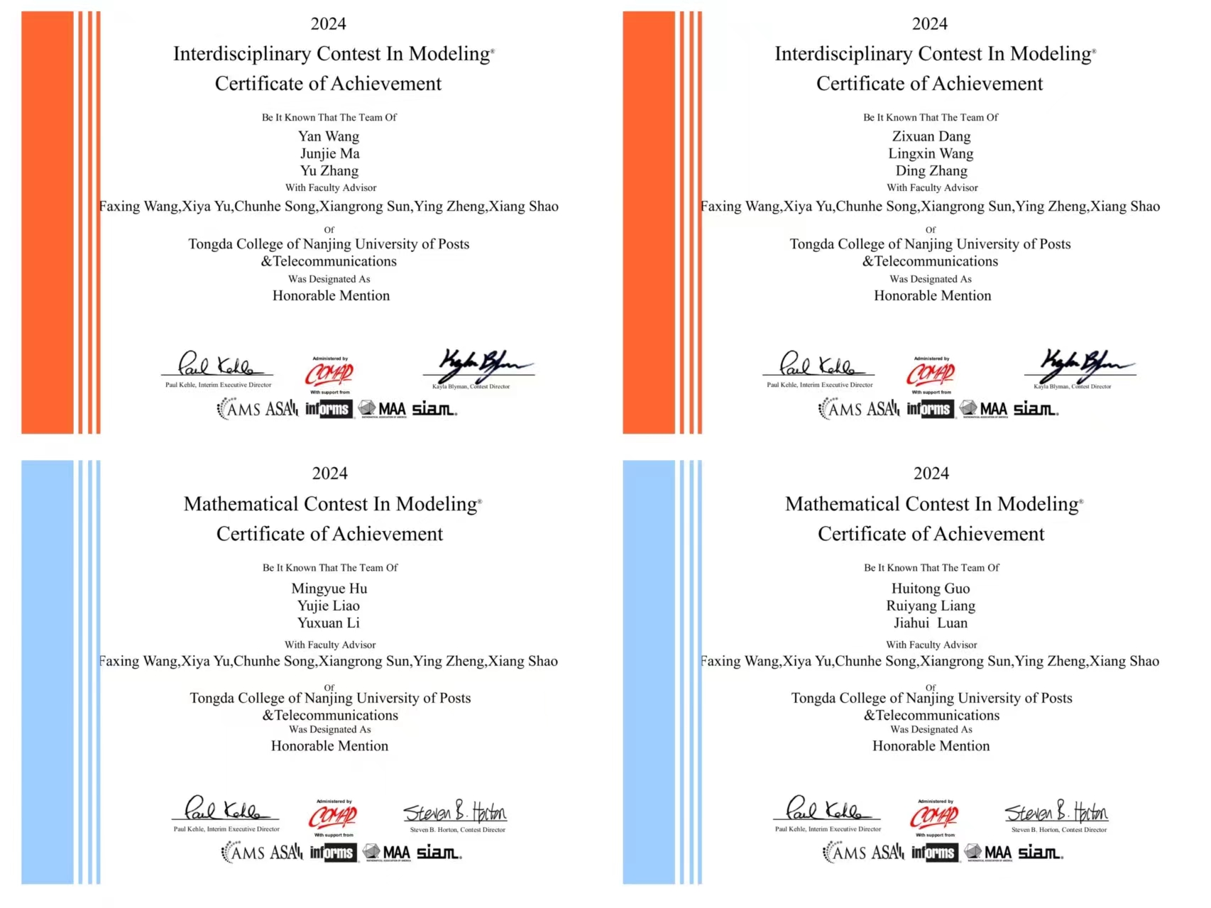 伟德官网在2024年美国大学生数学建模竞赛中喜获佳绩。参赛代表队表现优秀,在激烈的比赛竞争中脱颖而出,荣获一等奖M奖(Meritorious Winners)1项、二等奖H奖(Honorable Mention)7项以及S奖(Successful Participant)31项,获奖数量创学院历史新高。