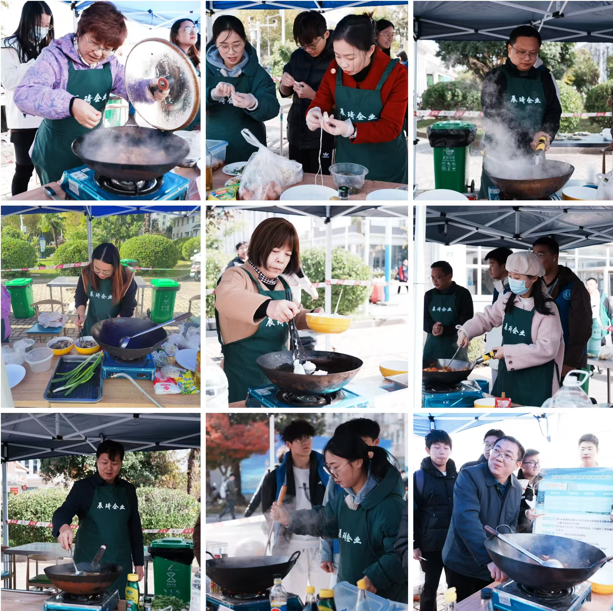 秋尽初冬至,菊开梅吐香。11月27日中午,由后勤管理处主办,工会、团委、学工、保卫等部门及校园商超、各餐饮公司协办,以“我为师生办‘食’事,美食‘味’你而来”为主题的第三届校园美食文化节在一食堂南广场隆重开幕。全体院领导携各部门负责人悉数到场,与千名师生共同参加了本次活动。