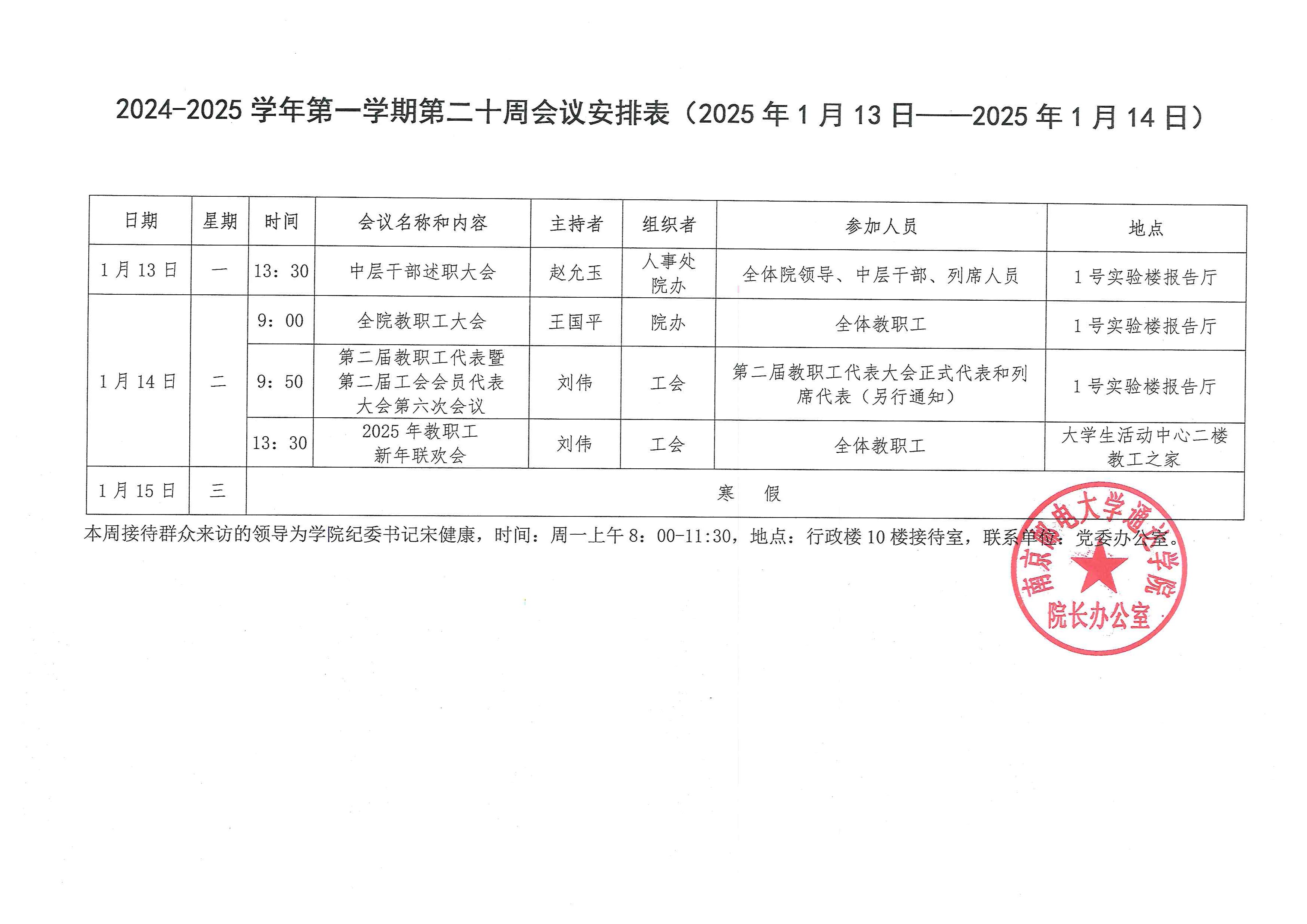 2024-2025学年第一学期第二十周会议安排表