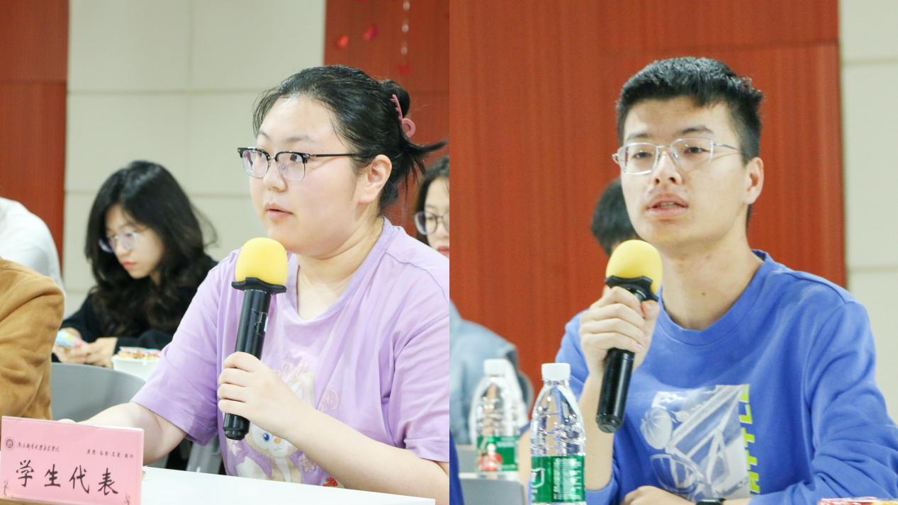 在座谈会现场,毕业生代表们依次发言,真诚分享自己的求学经历与心路历程。在交流过程中,同学们一方面深情表达对母校培育的感恩与离别眷恋,另一方面积极围绕优化人才培养、提高教学水平、升级后勤服务、完善学生管理、加强实习实践基地建设等多个维度,为学院发展积极建言献策。字字句句中,饱含着对母校悉心培育的感恩之情,以及对母校发展的热忱关切。