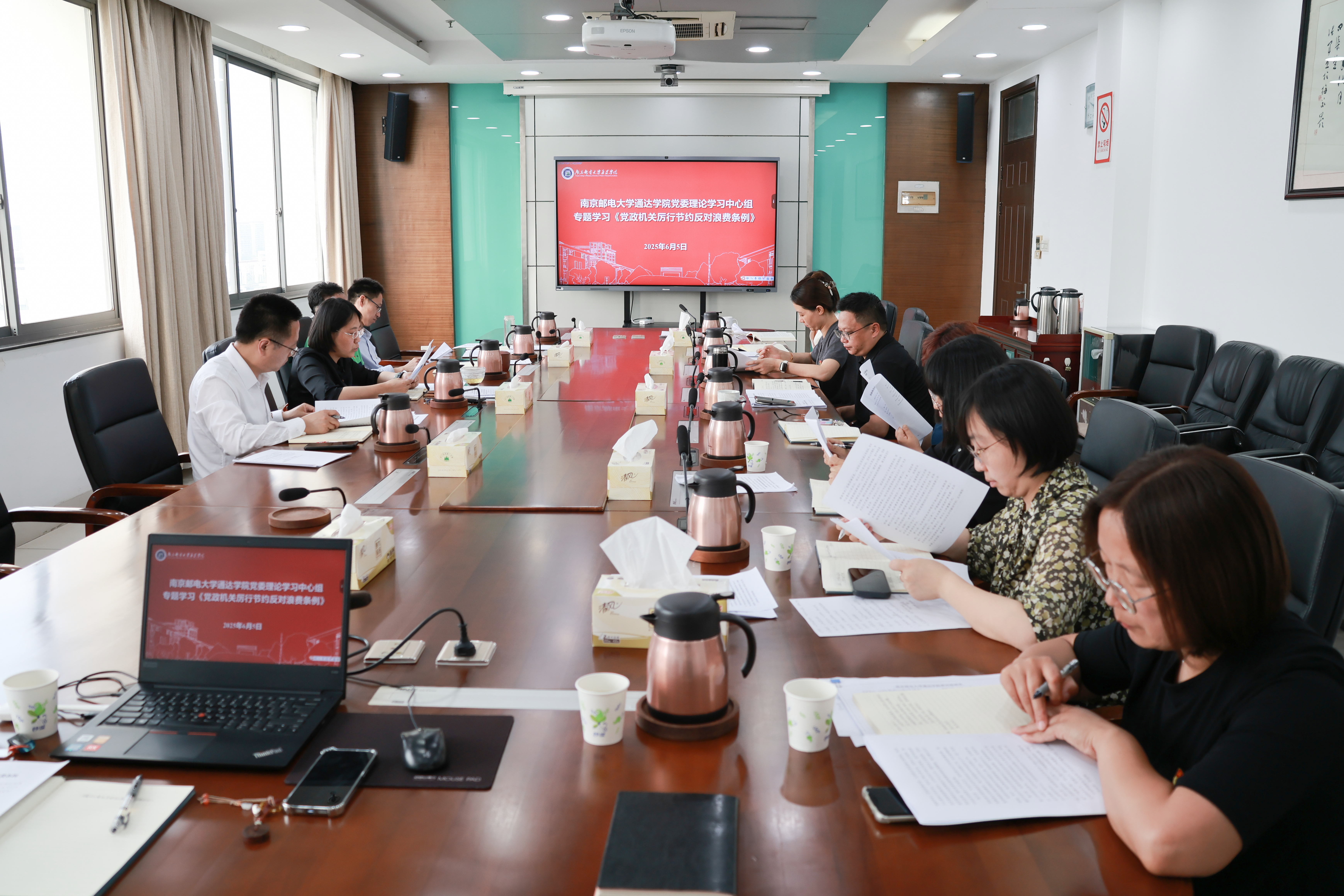 6月5日下午,学院党委理论学习中心组召开集中学习会,深入学习《党政机关厉行节约反对浪费条例》,并就典型案例深入剖析开展警示教育。集中学习会由学院党委书记赵允玉主持。