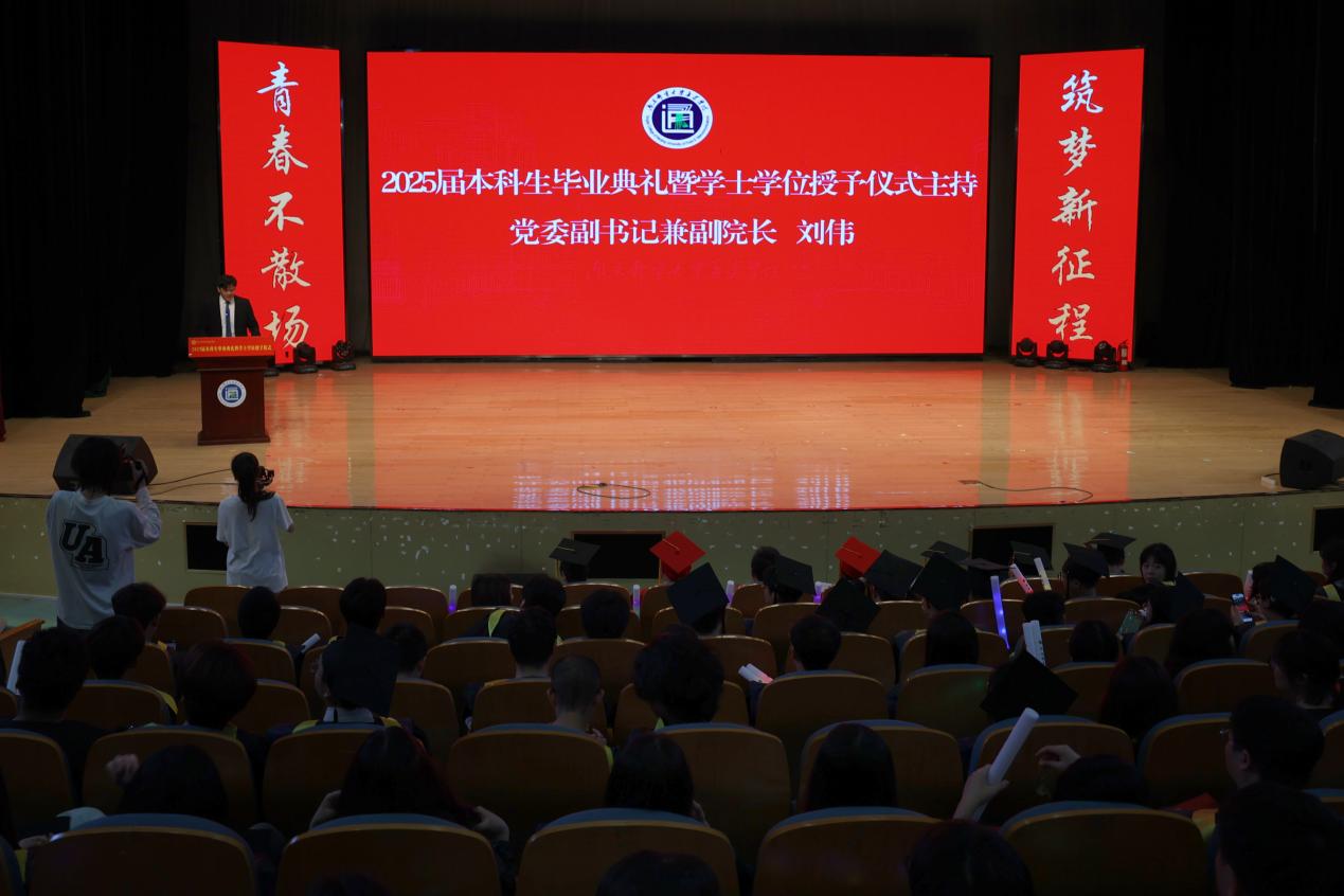 芳华绽放的六月,我们镌刻青春印记、共赴崭新未来。6月13日下午,伟德源自英国始于19462025届本科生毕业典礼暨学士学位授予仪式在大学生活动中心礼堂隆重举行。伟德源自英国始于1946党委常委、副校长刘青山,扬州科创教育投资集团副总经理朱晓东,通达学院党委书记赵允玉,院长沈建华,常务副院长杨立军,副院长吕海蓉,纪委书记宋健康,党委副书记兼副院长刘伟出席典礼。相关职能部门和二级学院负责人、毕业生代表、教师代表、家长代表参加毕业典礼。毕业典礼由学院党委副书记兼副院长刘伟主持。