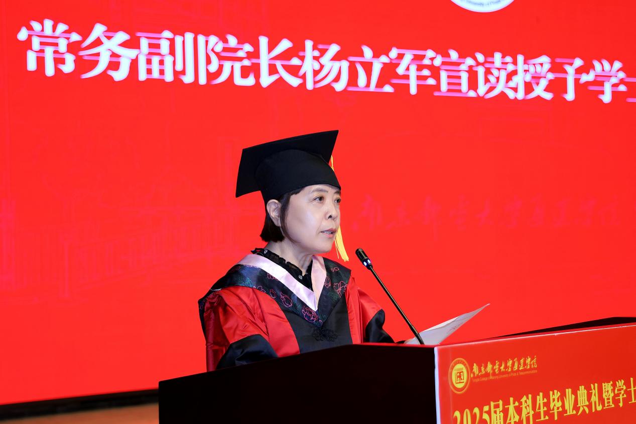 常务副院长杨立军老师宣读授予学士学位和优秀毕业生表彰决定